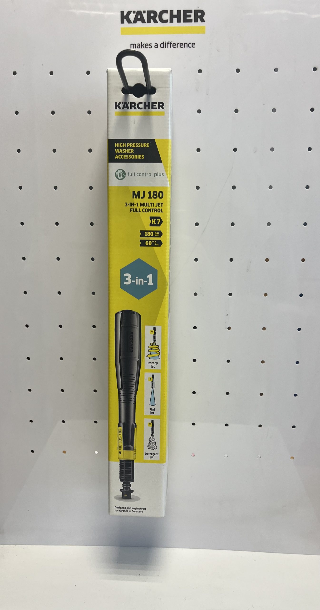 Un multitalento para todo tipo de aplicaciones: la Multi Jet 3 en 1 de Kärcher ofrece un chorro plano de alta presión con regulación continua, una boquilla rotativa y un chorro de detergente en una sola lanza pulverizadora. La selección del chorro más adecuado se realiza con un simple giro en la lanza pulverizadora. La presión se regula de forma cómoda con las teclas de la pistola Full Control Plus Power Gun G 180 Q. Apta para la limpiadora de alta presión K 7 Full Control Plus y K 7 Premium Full Control Plus de Kärcher a partir de 2017.